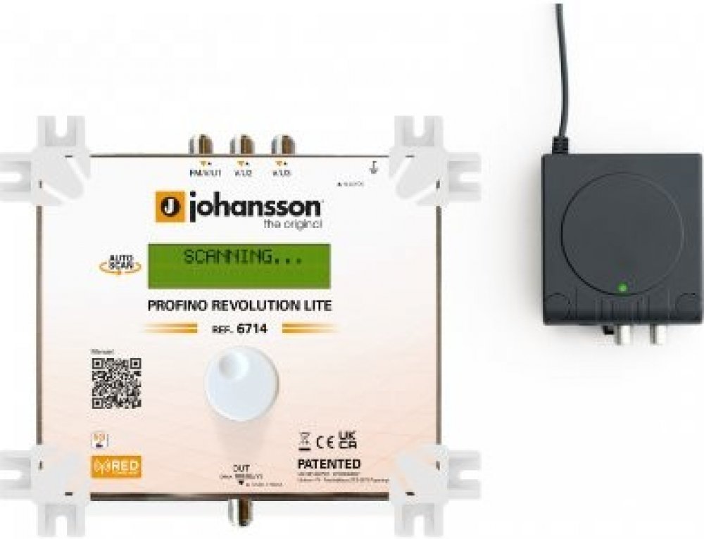 KIT6714 Profino Revolution Lite + napájecí zdrojProgramovatelný zesilovač pozemního filtru: FUNKCE AUTOSCAN / 1 FM/VHF/UHF & 2 VHF/UHF vstupy / >50 kanálů (32 filtrů) / 108 dBµV / AGC / Napájení přes koaxiální kabel / 12V napájecí zdroj v ceně (ref. 2438)
