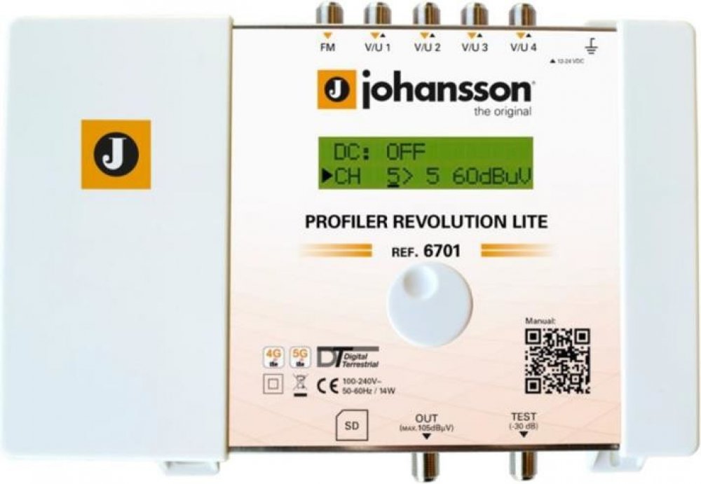 Programovatelný zesilovač je určený pro rozvody STA, ITR. Johansson Profiler Revolution 6701 LITE je snadno použitelný programovatelný zesilovač a kanálový konvertor (měnič kmitočtu) pro pozemní VHF / UHF a FM signály z několika vstupů s cílem poskytnout vysoce kvalitní signál. Zesilovač disponuje pěti vstupy : 1x FM + 4x VHF / UHF. Z...