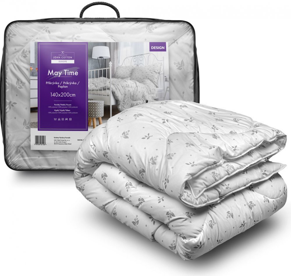 Celoroční přikrývka John Cotton měří 140 × 200 cm (š×d). Díky hypoalergenní úpravě minimalizuje riziko podráždění. Povrch z polyesteru je pevný, odolný a nenáročný na čištění. Duté vlákno ve výplni se snadno čistí a zachovává svůj tvar. Snadno ji vyperete v pračce. Klíčové vlastnosti produktu JOHN COTTON Příkrývka MAYTIME, 140 × 200 cm Přikrývka John Cotton lze používat celoročně bez omezení Má rozměry 140 × 200 cm (š×d) Antialergenní úprava omezuje výskyt roztočů a minimalizuje riziko podráždění Po zašpinění ji stačí vložit do pračky a vyprat Svrchní vrstva je z polyesteru Její výplň tvoří duté vlákno S prošíváním Bílá barva