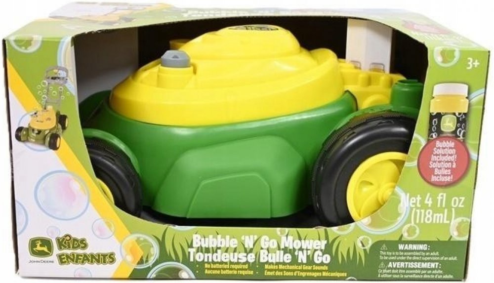 - Obsah balení: Bublifuková sekačka John Deere, 118ml bublifukového roztoku, návod k použití