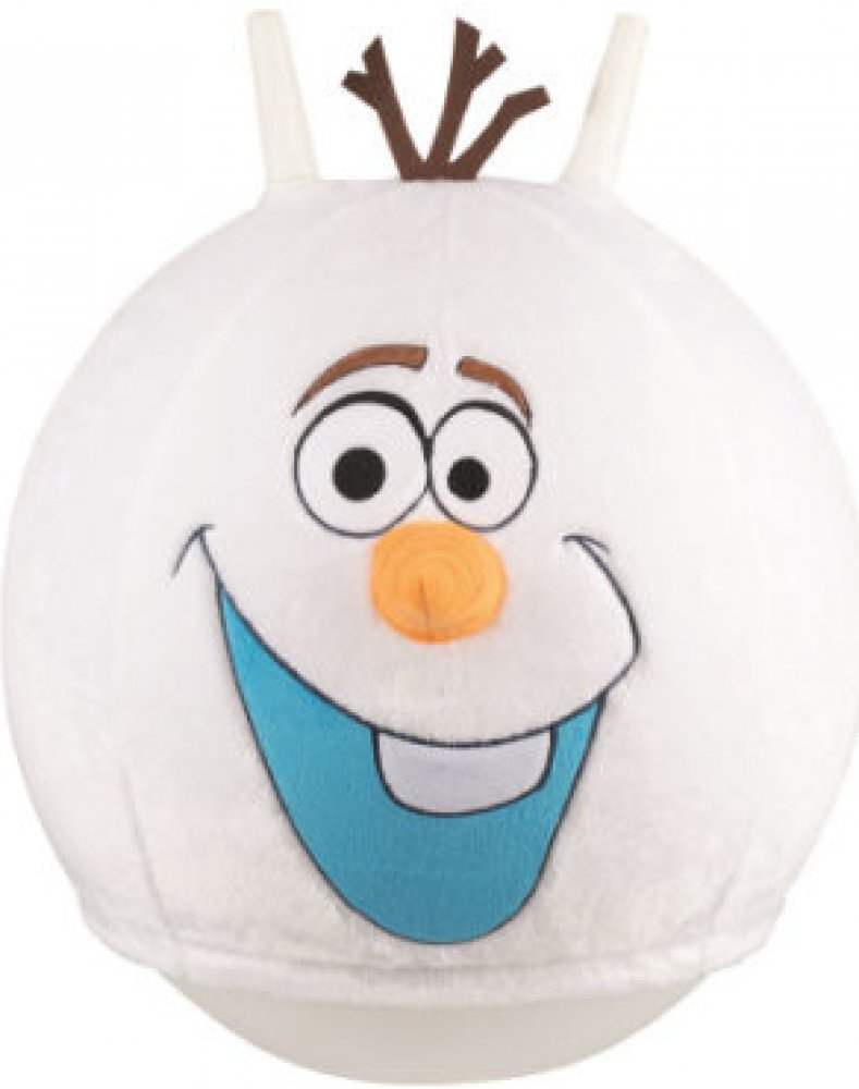 Veselý hopsací plastový balon se dvěma držadly v bílé barvě. Hopsadlo je potaženo látkou, která je odnímatelná, s motivem sněhuláka Olafa z Ledového Království - Frozen. Baleno v krabici.