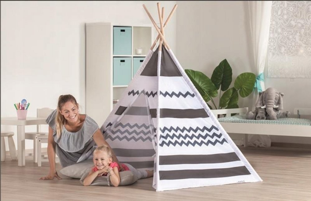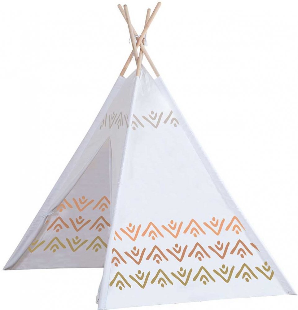 Teepee v barevném provedení je ideální útočiště pro malé indiány nebo pro plyšové kamarády. Prostorné teepee v retro-vzhledu s tiskem na všech čtyřech stranách a uzavíratelným vstupem. Rozměr sestaveného teepee je 120 x 120 x 160 cm.