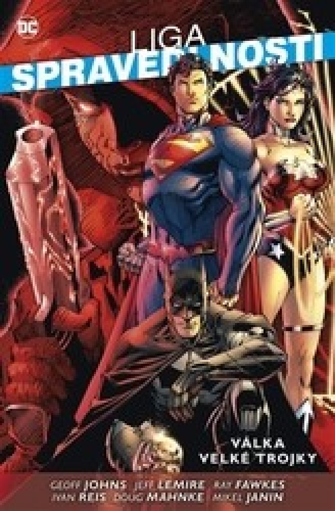 Před dávnými časy narazila jedna nevinná žena na zlověstný artefakt: skříňku ve tvaru lebky. Otevřela ji… a vypustila do světa sedm smrtelných hříchů.O tisíce let později se světem začne plížit zlo – a do cesty se mu postaví armáda hrdinů. Nejmocnější z těchto hrdinů se shromáždí ve třech týmech, z nichž každý nese ve svém názvu slova „liga spravedlnosti“. Každý z těchto týmů má vlastní metody a motivy. Příměří, které mezi nimi panuje, je křehké, ale vydrželo.Až doteď.Ve světě se znovu objevila Pandořina skříňka a její vliv, jenž kazí lidi, se šíří jako nemoc. Vůči jejímu zlu není imunní dokonce ani Superman. Její moc může ovládnout pouze někdo s nejčistějším nebo nejtemnějším srdcem. Planetu Zemi prohledává trojice záhadných bytostí a pátrá po tajemstvích skříňky. Mezi třemi týmy složenými z největších hrdinů světa vypukne válka, která má rozhodnout o osudu nebezpečného artefaktu. A v zákulisí zla číhá ještě větší zlo…Na knize LIGA SPRAVEDLNOSTI: VÁLKA VELKÉ TROJKY se podílela celá armáda největších talentů komiksové branže, včetně takových tvůrců jako Geoff Johns, Jeff Lemire, Ray Fawkes, Ivan Reis, Doug Mahnke či Mikel Janin, aby vyprávěla příběh plný mýtů, magie a moci, jenž navždy změní podobu světa New 52!Kniha obsahuje kompletní ságu VÁLKA VELKÉ TROJKY, složenou ze sešitů Liga spravedlnosti č. 22–23, Temná liga spravedlnosti č. 22–23, Americká liga spravedlnosti č. 6–7, Pandora č. 1–3, Constantine č. 5, Phantom Stranger č. 11 a The New 52 Free Comic Book Day Special 2012.