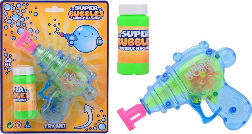 Johntoy Bublifuková pistole svítící + bublifuk. Úžasná bublifuklová pistole nejen vytváří krásné bubliny, ale i svítí. Navíc je v balení ještě jeden bublifuk. Zmáčkni spoušť a začne se hrnout spousta bublinek. Jde o mechanickou hračku. Pistole při tvoření bublinek svítí. Bublifuk svítí na 1 baterii LR41, která je součástí balení. Věk 3+