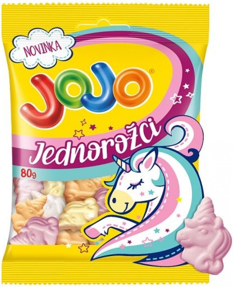 Oblíbený produkt z kategorie: . Jojo Jednorožci pěnové želé bonbóny 80 g máme běžně skladem.