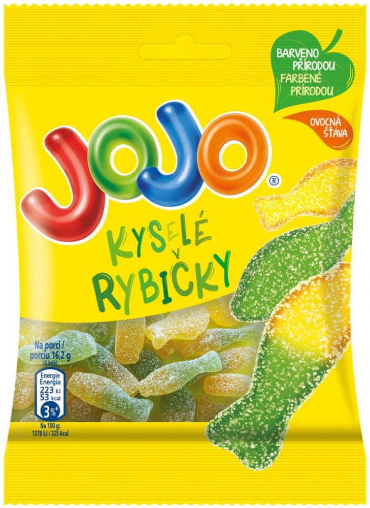 JOJO Kyselé rybičky želé bonbóny 80 g jsou ideální volbou pro milovníky svěží kyselé chuti v kombinaci s ovocnými tóny. Každý kousek je měkký, pružný a obalený jemnou kyselou vrstvou, která se dokonale doplňuje s příchutí jablka a citronu. Zábavný tvar rybiček a příjemná konzistence dělají z těchto bonbónů oblíbenou pochoutku pro každodenní mlsání.