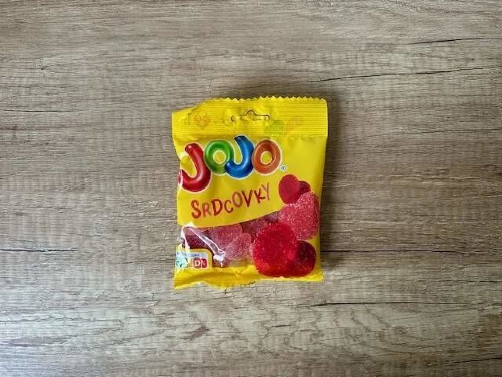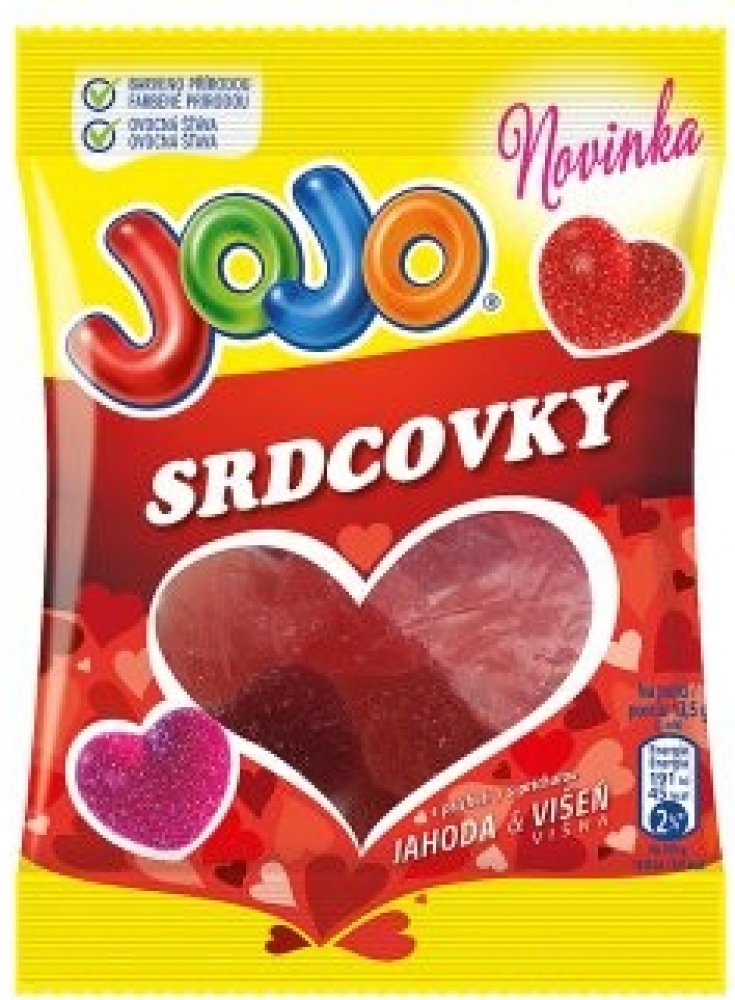 Cukr, glukózový sirup, pitná voda, koncentrát jablečné šťávy 4,8 %, kyselina (kyselina citronová), želírující látka (pektiny), regulátor kyselosti (citronany sodné), koncentrát šťávy z černé mrkve, aromata (višeň, jahoda)
