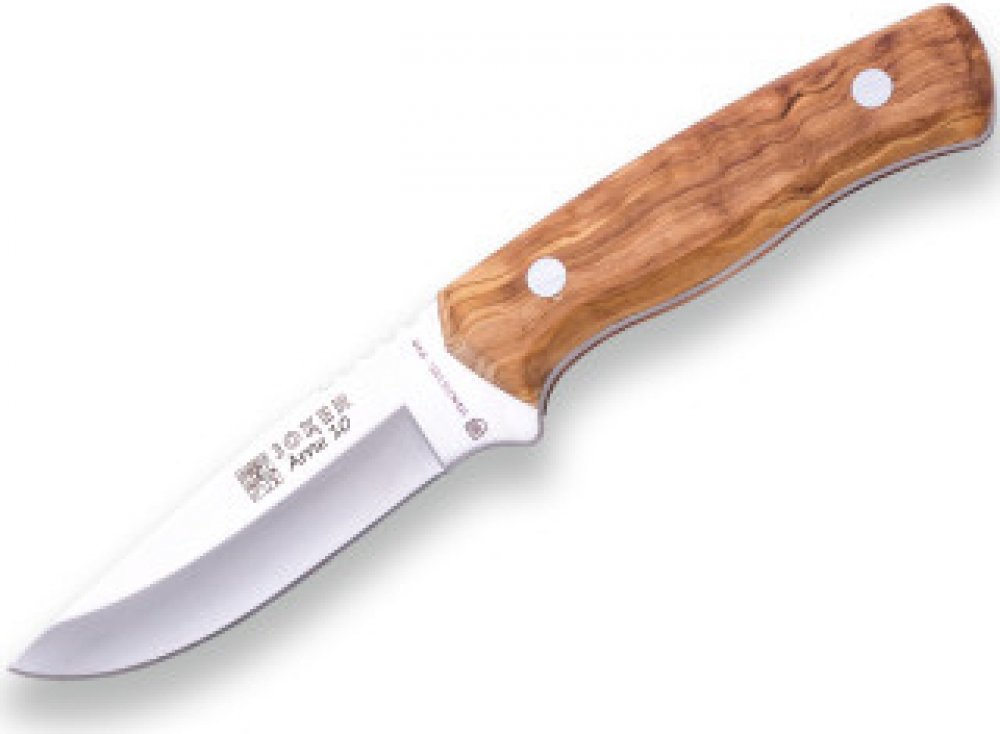 Kvalitní lovecký nůž od španělského výrobce Joker. Čepel ve tvaru Drop Point je vyrobena z nerezové oceli a její délka činí 10 cm. Rukojeť je vyrobena z olivového dřeva, které noži dodává unikátní vzhled. Ergonomické profilování zaručuje pevný a bezpečný úchop při manipulaci. Specifikace: • rukojeť z olivov...