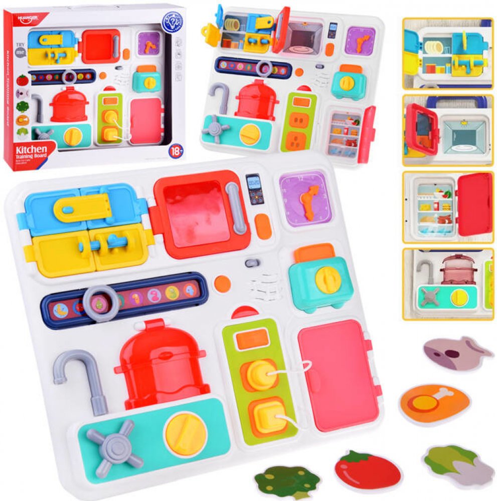 Skvělá manipulační tabule ve tvaru kuchyně je dokonalou edukativní hračkou navrženou pro malé děti od 18 měsíců. Vyrobena z vysoce kvalitního plastu, nabízí bezpečné a příjemné zábavné chvíle. Tabule je vybavena: Mnoha tlačítky, knoflíky a posuvníky, které stimulují zvědavost a pomáhají rozvíjet manuální dovednosti. Zvukovými a světelnými efekty, které hru ještě více oživí. Přenosným úchytem pro s...