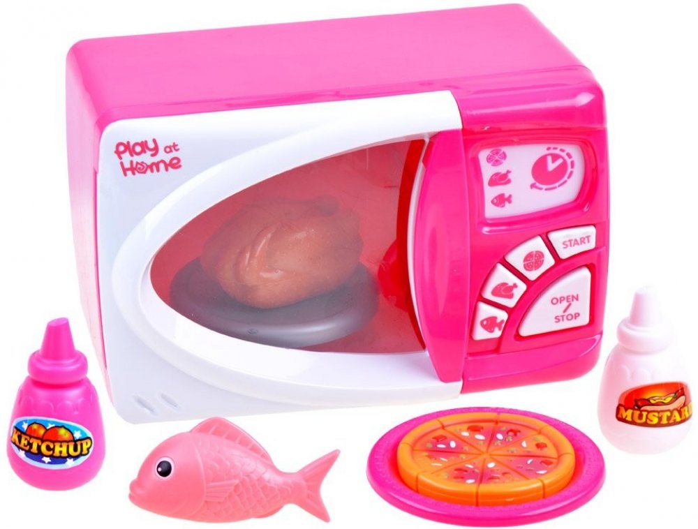 Sada obsahuje:- Mikrovlnná trouba- hračka v imitaci kuřete- hračka v imitaci pizzy- hračka v imotaci ryby- hračka v imitaci hořčice- hračka v imitaci kečupu