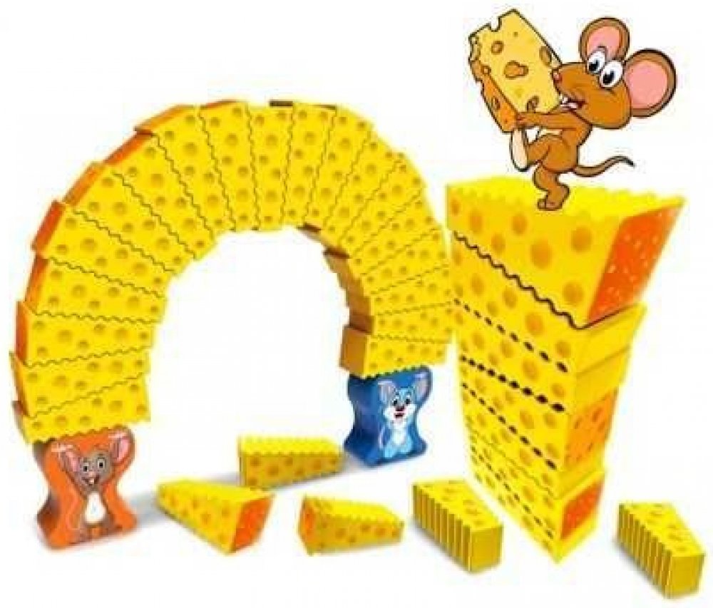 Myší Jenga je fantastická hra pro malé i velké děti.Ukládání věže, oblouku a různé kombinace ukládání sýrů přinese spoustu vzrušující zábavy.Set obsahuje dvě myši. Pomozte jim sbírat sýr ve třech zábavných hrách. Ukládání sýra na myš (pro 2–4 hráče):- Umístěte jednu myš do středu hrací plochy.