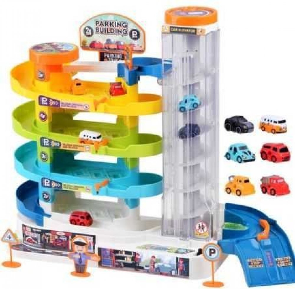 Parking, autodráha, která jistě zaujme každého fanouška čtyřÅ›ciÄ… ółek. Hračka se skládá&AÅ‚zż čtyř piÄ™ter výjezdůóek a má čtyři parkovací místa na každémżz piÄ™ter. Parkoviště je vybavenożony s lÄ…helikoptérouów parkovací plochou. NejvětšíÄ™atrakcíÄ…neÄ…je však bezpochyby pohyblivá liána, díkyÄ™kteréórej lzeürychle zvednoutźćauto z přízemí na poslední piÄ™tro.ÂVítrÄ™ můžeżnapÄ™dziać dvěma způsoby:- ručně, krÄ™cÄ…c pomaraÅ„cz prvek na vrcholu výtahu,Â- elektrické napájení - po nasazení 3 x AA baterií (nejsou součástí dodávky) a přesunutí tlačítka z polohy OFF do polohy ON začne výtah pracovat&A˚‚a&A˚‡. Práci výtahuÄ…gu doprovází veseláÄ‚hudba a barevná, měnící seÄ…Ä™světlaÄ‚v základně.ÂDostup k výtahu se nacházíÄ™ na straně kudrnatého, tyrkysového výstupu. Vůz se po výjezdu z výtahu automaticky rozjedeźdżdżać do dół. PokudÅ›l chce zastavitć je na kteréórymÅ› z piÄ™ter, jednoduše spustíÅ›cić zábranu.ÂObsahuje:- kusy na stavbu čtyřpiÄ™parkoviště,Â- 6 aut,Â- informační cedule,- figurka strážníka,Â- samolepky.ÂRozměry parkovacího místa:- highść přibl. 34,5 cmÂ- šířkaść cca. 13 cm- dÅ‚ugość cca. 42 cmÂVelikost auta:- výškaść přibl. 1,8 cmKaÅ‚ość je vyroben z plastu v příjemných barvách. CelýÅ‚ość je doplněnÅ‚… barevnými informačními cedulemi, figurkou strážníka a samolepkami, takže hračka připomíná skutečné parkoviště.ÂSada je zabalena v barevné, estetické krabiciÅ‚ko, ideální jako dárek.Â
