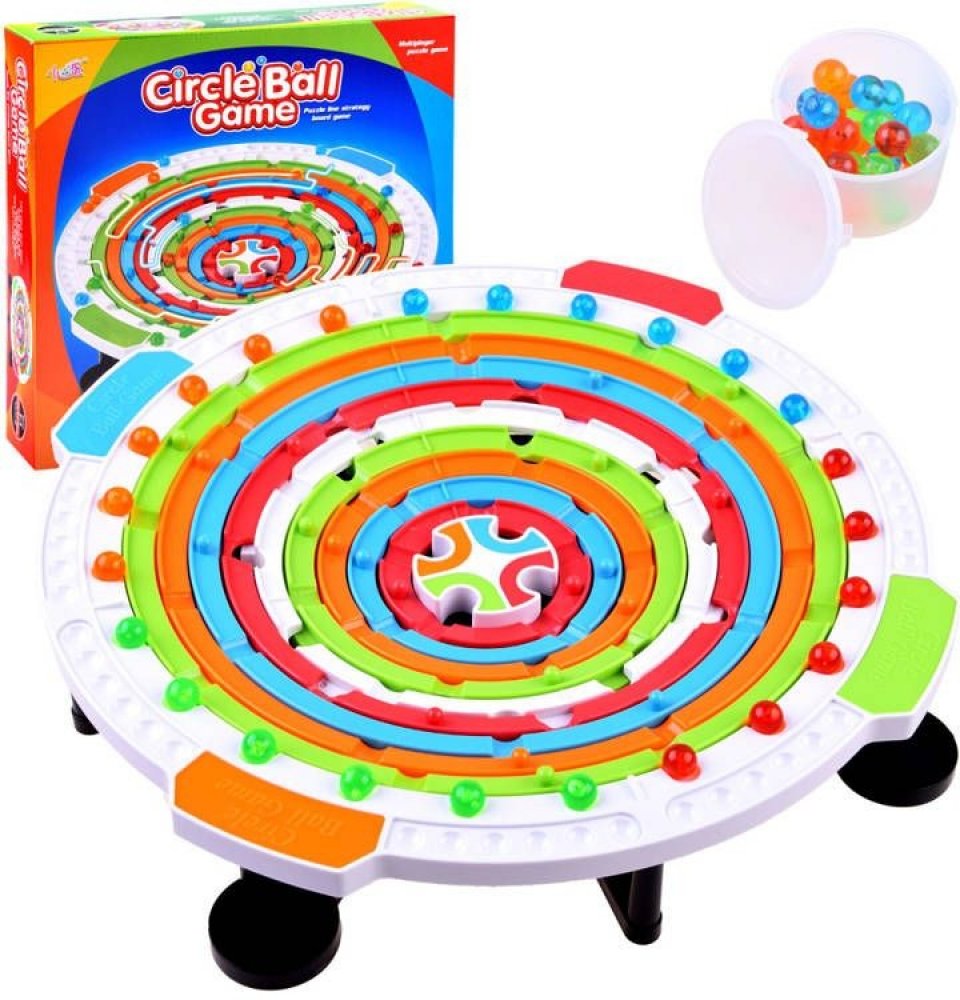 Strategická společenská hra, ve které je důležité logické myšlení, postřeh a pozorování okolí a schopnost předvídat další tahy. Obsah:- 1 základ (ruleta),- 28 kuliček ve čtyřech barvách (modrá, zelená, červená, oranžová),- nádoba na kuličky.Počet hráčů: 2-4 Předpokládaný věk: 3 roky +Doba hry: cca 3 hodiny. 20 minut. Pravidla hry: Hraje se podle pravidel. 1. Příprava na hru. Kruhy seřazujte podle vodorovné čáry vyznačené čísly tak, aby tvořily jednu přímku. Poté rozdělte kuličky mezi hráče (každý hráč dostane kuličky jedné barvy). Každý hráč umístí 6 svých kuliček na startovní pole. Poté by měla být poslední pole (KONEC) nastavena podle barev startovních polí (jednodušší varianta) nebo promíchána, aby se zvýšila obtížnost hry. 2. Hra Určete pořadí hráčů. Úkolem každého účastníka je posunout kolečka tak, aby jeho kulička zapadla do otvoru označeného příslušnou barvou v koncovém poli. Hráč otáčí kruhem tak dlouho, dokud do něj nespadne kulička libovolné barvy. Jakmile se kulička ocitne ve spodním kruhu, musí se kruh okamžitě zastavit. Směr kruhu nelze během pohybu měnit. Uprostřed základny je bílý kruh s pastí. Touto částí hrací plochy musíte opatrně vést své kuličky. Pokud se stane, že hráč svým pohybem způsobí, že jeho koule spadne do pasti, musí ji umístit zpět na jedno ze šesti startovních polí. Pokud hráč umístí soupeřovu kouli do pasti, převezme ji a umístí ji na své bodovací pole. Hráč pohybuje svými koulemi pouze v případě, že se dostanou na cílové pole ve správné barvě. Pokud hráč při svém tahu umístí soupeřovu kouli do důlku stejné barvy jako jeho koule, připisují se soupeři body (příklad: Hráč 1 má modré koule, při svém tahu umístí zelenou kouli hráče 2 do zeleného koncového pole, body jsou uděleny hráči 2). Pokud hráčova koule zasáhne jamku nesprávné barvy, body se přiznávají hráči, kterému jamka v koncovém poli patří, a koule musí být v jeho bodovém poli. Hra končí, když všechny koule dosáhnou koncového pole. 3. Bodování a konec hry.Když jsou již všechny koule v koncovém poli, musí se spočítat body a určit vítěz. Bodování:- míč v barvě hráče- 10 bodů- chycený soupeřův míč- 20 bodů- body za umístění:1. místo- 60 bodů2. místo- 40 bodů3. místo- 20 bodů. Základní velikost:- průměr cca. 1,5 m. 37 cm- výška cca 6,5 cm Hra je neuvěřitelně návyková a vzrušující, ideální pro dlouhé večery s rodinou nebo přáteli. Sada je zabalena v nápadné, barevné krabici. Největší výběr her všeho druhu najdete v obchodě Jokomisiada. .