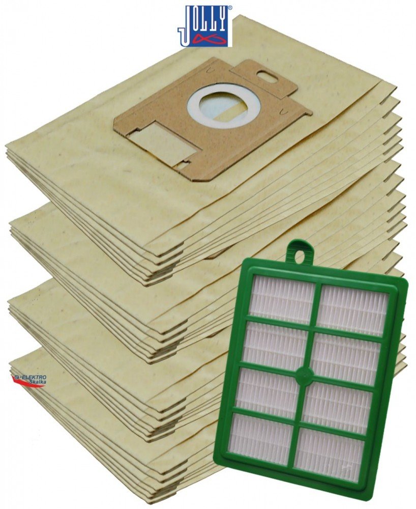 Sada HEPA filtr EP-H12 do vysavače JOLLY 1SBAG a sáčky papírové 1+24ksSada HEPA EP-H12 filtr a 1SBAG Jolly sáčky 24ks papírové pro vysavače ELECTROLUX S-BAG, AEG, Philip s filtry S-BAG ELECTROLUX E200 Classic, ELECTROLUX E200B, ELECTROLUX E200M, ELECTROLUX E200S, E201, E202, E203, E205, E206, E210, E212, UMP3, MENALUX 1800, SWIRL PH86, WORWO ELMB01K Perfect Bag kompatibilní, jsou vhodné do vysavač...