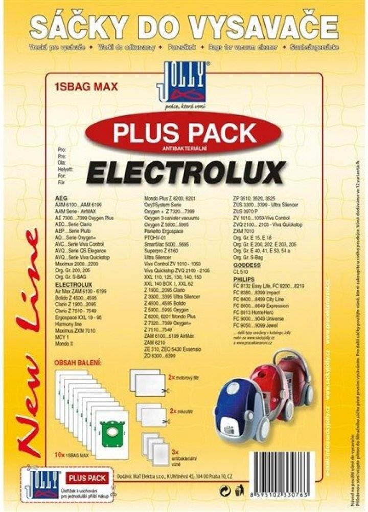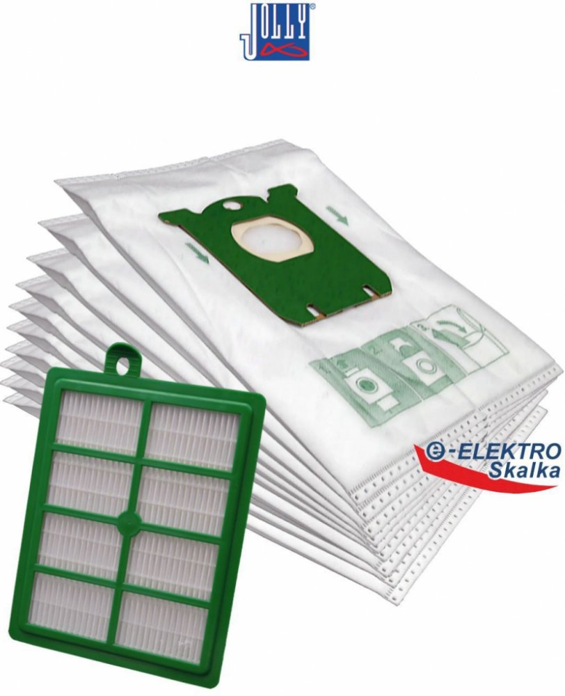 HEPA filtr do vysavače JOLLY 1SBAG MAX PLUS a sada sáčků 1+10ksFiltr HEPA EP-H13 Pro vysavače AEG, ELECTROLUX, Philips, Zanussi rozměrově kompatibilní s označením filtrů výrobce AEG AFS1W, AEG AEF12, ELECTROLUX EFH12, EFH12N, EFHG12W, EFH13, EFH13W, EF26, EFS1W a sáčky do vysavače 1SBAG MAX Typu S-Bag textilní 10ks v jednom originál balení filtrů 1SBAG MAX PLUS PACK značky Jolly + 7ks příslušenstv...