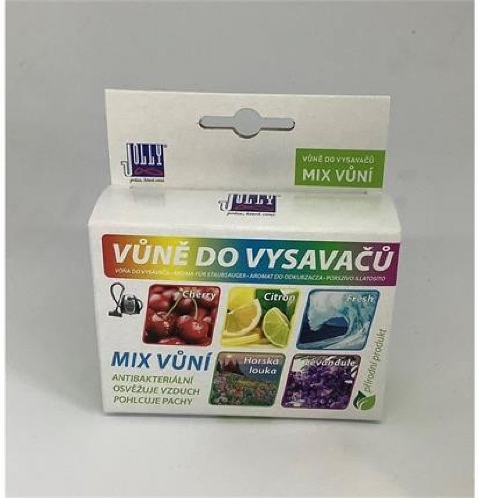 Luxování vás v ideálním případě zbaví prachu, je ale škoda nevyužít proudu filtrovaného vzduchu, který vysavač při své činnosti neustále vypouští. Vonné sáčky Jolly vsypte do sáčku vysavače, který jejich vůni jemně rozptýlí po vysávané místnosti. V balení je pět sáčků s vůněmi – cherry, citron, fresh, horská louka a levandule. Vyrobeno z přírodních látek.