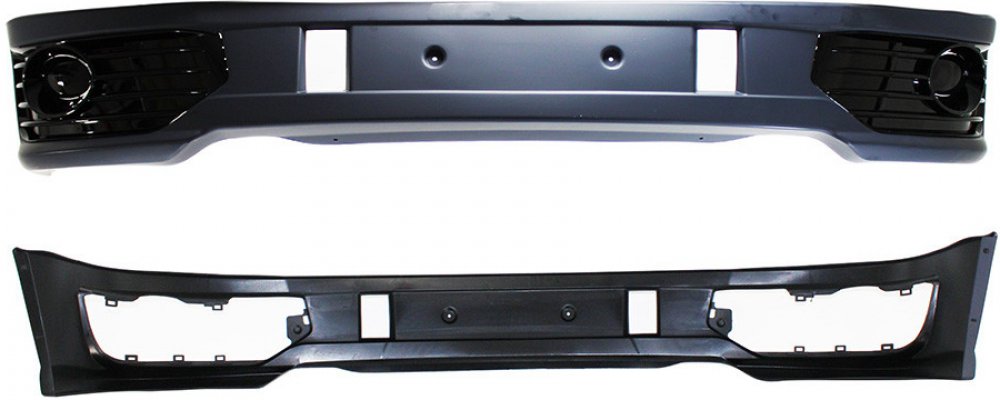 Spoiler na přední nárazník pro VW T5 facelift, vyrobený z ABS plastu, určeného k přelakování do barvy vozu. Spoiler dodáváme včetně rámečků okolo mlhovek v černém lesklém provedení a včetně vyobrazeného montážního příslušenství.