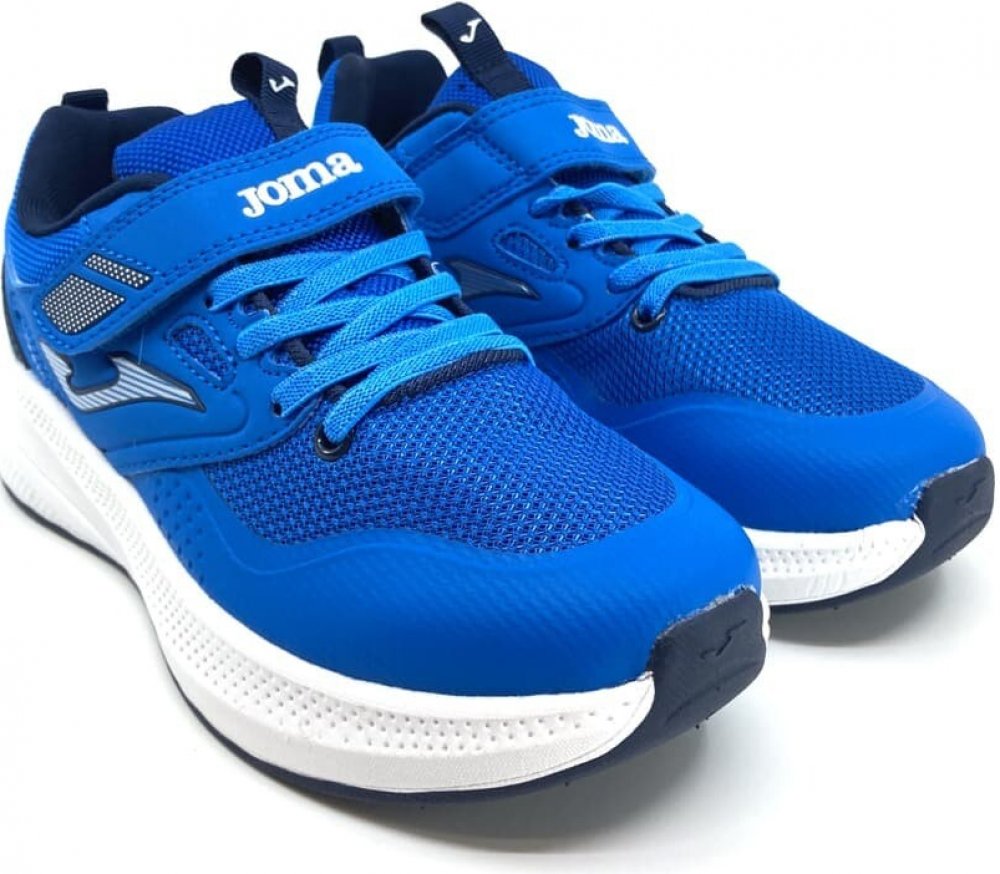 Sportovní tenisky Joma Ferro JR 2504 Royal Blue v modro-bílé kombinaci od španělského výrobce jsou skvělé na běh i každodenní nošení. Boty jsou extrémně prodyšné a to díky svršku ze síťoviny s technologií VTS, která zajišťuje dostatečnou ventilaci. Špička je vyztužená nahoru a brání tak okopání.