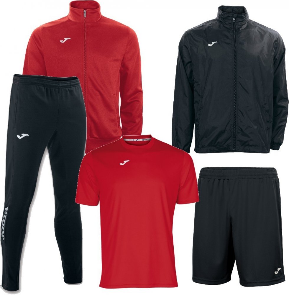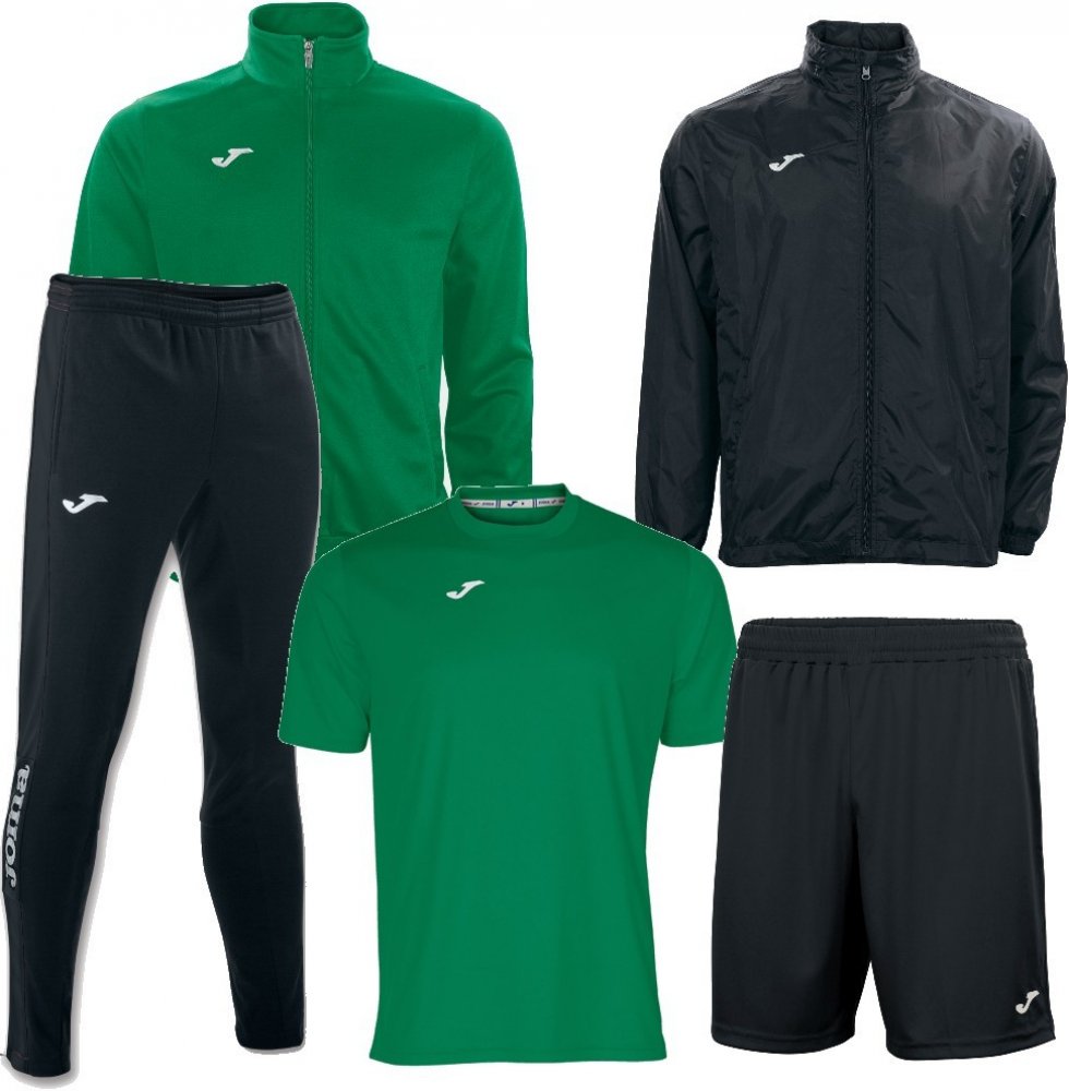 - Set JOMA Gala Combi je složený z teplákové bundy JOMA Gala, dresu JOMA Combi, tepláků JOMA Champion IV,, trenek JOMA Nobel a šusťákové bundy JOMA Iris