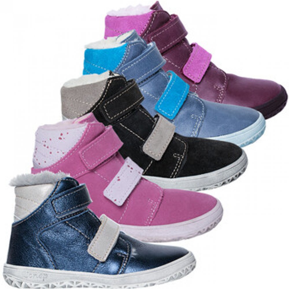 Vysoké zimní boty nad kotníky s extrémně odolnou, lehkou, ohebnou podešví z pryže a širokou podešví v prstové části. Vyrobená z těch nejjemnějších a nejměkčích usní. Dokonale se přizpůsobí dětské nožce. Konstrukce obuvi je navržena tak, aby co nejvíce umožňovala přirozený vývoj dětské nožičky a pohyb chodidla při chůzi a běhu.