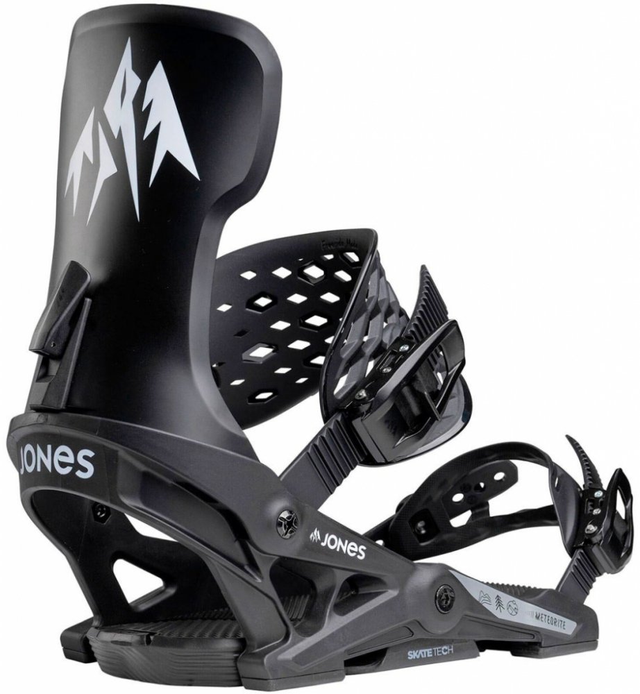 vázání JONES Meteorite ECLIPSE BLACK Vázání an snowboard JONES Meteorite je navrženo jako „friendly all-mountain binding“ – pohodlné, obratné, ideální pro jízdu v různém terénu. Díky měkčímu flexu je ideální volbou pro všechny snowboardisty od začátečníků až po pokročilé, kteří chtějí kombinovat pohodlnou jízdu po sjezdovce, freestyle triky i surfový styl v prašanu. Tuhost (Flex) a určení Celkový flex vázání: 2/5 Určení: All-mountain Vlastnosti a parametry: Dynamic Flex Highback Patka je navržena tak, aby byla pružná a hravá. Má asymetrický tvar, s malým bočním „křidélkem“ pro lepší sílu při toe-side obratech. Středová část je tužší pro stabilitu v obloucích, zatímco strany jsou tenčí, aby minimalizovaly tlak na lýtko. Nabízí tool-less nastavení předklonu (forward lean) pro snadné doladění. Hanger 2.0 Klíčová část konstrukce: Hanger je uchycen na Kingpin jako páka, což umožňuje rychlý přechod hrana-hrana a minimalizuje vliv vázání na flex desky. Rám hangru je vyztužen plastem a 30 % skelným vláknem pro vyšší pevnost. Power Ankle Straps Kotníkové pásky (ankle straps) jsou vyrobeny z tvarované ABS hmoty, široké a asymetrické, což poskytuje pohodlné uchopení boty a zároveň umožňuje nastavení odezvy. Kompatibilní s tzv. Flip-It Strap mode, tedy možností přepínat mezi freeride a surf režimem. ZyTech Buckles Spony z materiálu Zytech Fiber Composite s ocelovými pružinami a osou. Mají trojí akci (triple action ratchet) pro rychlé zapnutí a pevné dotažení. Tool-Less Strap Adjustment Délku pásků lze měnit bez nářadí – stačí pootočení západky či páky. To usnadňuje doladění při jízdě. Hinge Connector & Curved Ladders Konektory (hinge connectors) drží kotníkový pásek mimo prostor při nastupování do vázání. Universal Mounting Disk Vázání zahrnuje montážní disk kompatibilní s různými systémy: 4×4, 2×4 i EST / Channel. To zajišťuje širokou kompatibilitu s většinou snowboardových desek. Tabulka velikostí: Velikost S M L US Men 5.0 - 7.0 7.5 - 10 10.5 + EU 36.5 - 39.5 40 - 43 43.5 + Mondo 23.5 - 25.0 25.5 - 28.0 28.5 +