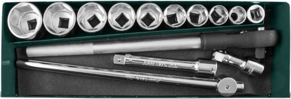 Gola sada metrických rozměrů, vodicí čtyřhran 3/4“, velikost hlavic 22-50 mm, 15 dílů v bytelném plechovém kufru – JONNESWAY S04H6315SA. Nástrčné hlavice s šestihranným profilem. Vyrobeno z kvalitní Chrom-vanadiové oceli (Cr-V), která se vyznačuje vysokou pevností a odolností vůči mechanickému opotřebení. Sada obsahuje:· 1x ráčna 24 zubů, délka 500 mm· 1x vratidlo, délka 450 mm· 2x prodloužení, délky 100 a 200 mm· 10 šestihranných hlavic: 22, 24, 27, 30, 32, 36, 38, 41, 46, 50 mm