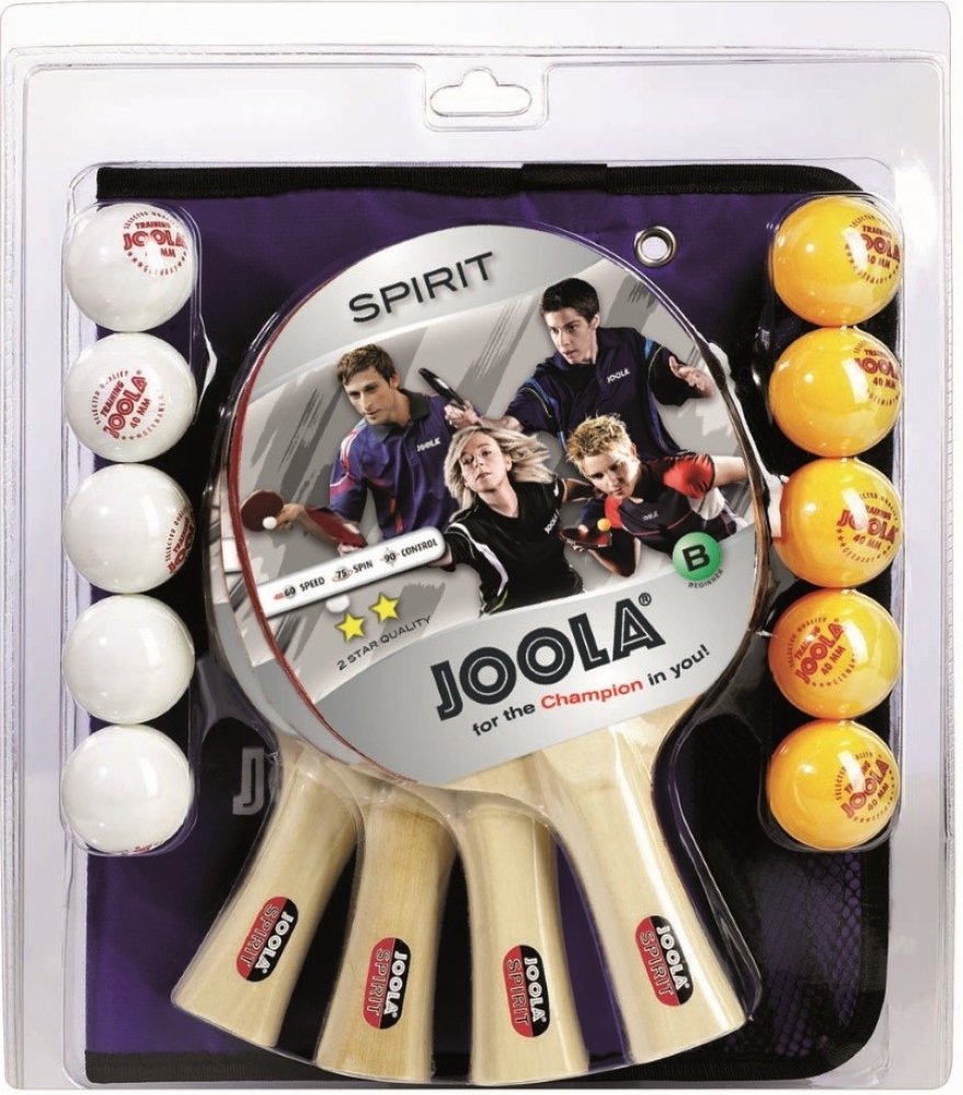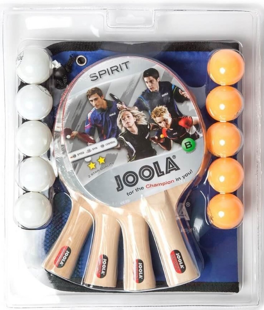 - Kompletní sada: Sada na stolní tenis FAMILY se skládá ze 4 pálek na stolní tenis JOOLA SPIRIT a 5 míčků na stolní tenis, každý v bílé a oranžové barvě, takže můžete začít hned.