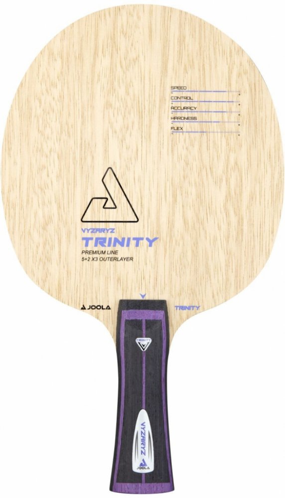 V první řadě toto dřevo využívá průlomovou X3, nejmodernější superkompozitní vazbu. Pro vytvoření X3 byly použity vodorovné vrstvy PBO-C tkané svislými vrstvami AL-C, které sahají až do rukojeti. Tento vzorec pro úspěch vytváří nebývalou stabilitu pro kompozitní dřevo. Představte si schopnost kombinovat sílu, pocit a přesnost, vše v jednom dřevu! Vnější vrstva Limba přidává ke každému úderu ještě větší nádech. Dřevo JOOLA Vyzaryz Trinity s 5 + 2 vrstvami vám poskytne skvělou podporu X3, když ji potřebujete!