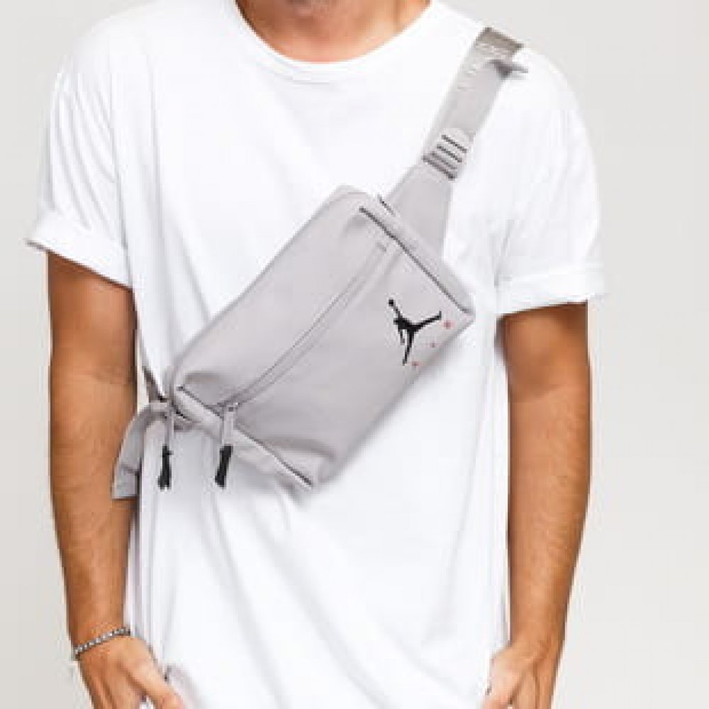 Ledvinka od značky Air Jordan v šedivém provedení se šedivým popruhem a decentním logem na přední části. - ledvinka - nastavitelný popruh se sponou - hlavní kapsa na zip s přihrádkou uvnitř - menší kapsa na přední straně na zip - příjemný materiál - logo na přední straně