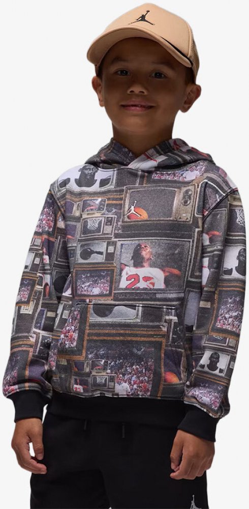 Chlapecká mikina Jordan MJ Brooklyn French Terry Hoodie je navržena na počest legendární kariéry Michaela Jordana. Podrobnosti Měkká bavlněná/polyesterová francouzská froté tkanina Celoplošný grafický potisk inspirovaný basketbalovým odkazem MJ Podšitá kapuce pro větší teplo Volný střih se spadlými rameny Klokaní kapsa na ruce nebo drobné předměty Žebrované manžety a lem Materiál: 80 % bavlna, 20 % polyester