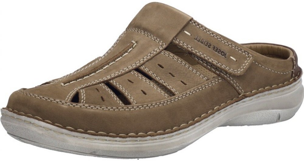 Pánské pantofle Josef Seibel s perforovaným svrškem a zapínáním na suchý zip. Boty jsou vhodné na širší nohu. Kožený vzor se přizpůsobí noze.