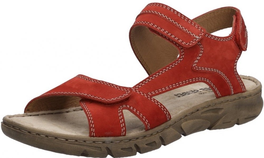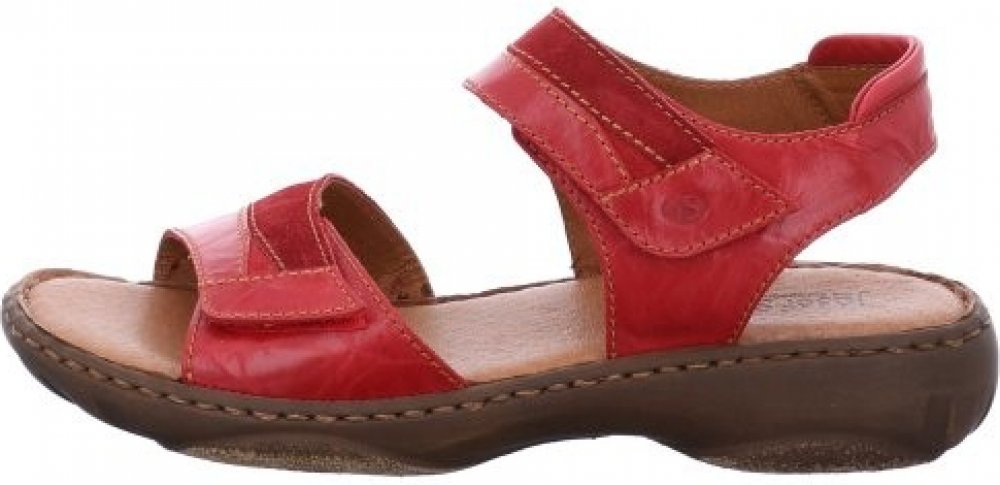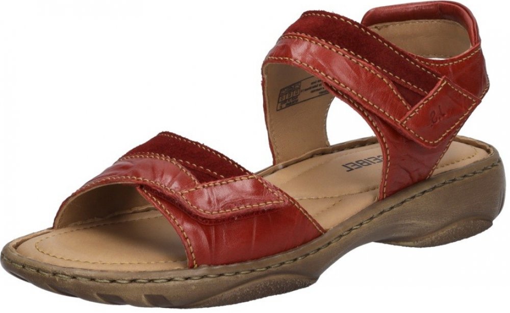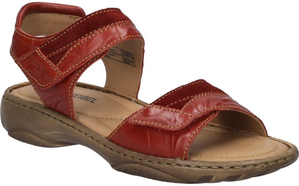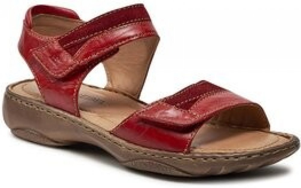 Dámské sandály Josef Seibel na pohodlném klínku s pásky na suchý zip přes nárt. Boty se hodí pro každodenní nošení, díky vyměkčenému došlapu je nebudete chtít sundat z nohy. Podešev:Podešev obuvi je s jemným protiskluzovým vzorkem vyrobená ze syntetického materiálu. Na platformě vysoké 2,5 cm. Svršek:Svršek obuvi je vyrobený z koženého materiálu. Barva svršku je červená. Podšívka:Podšívka je vyrob...