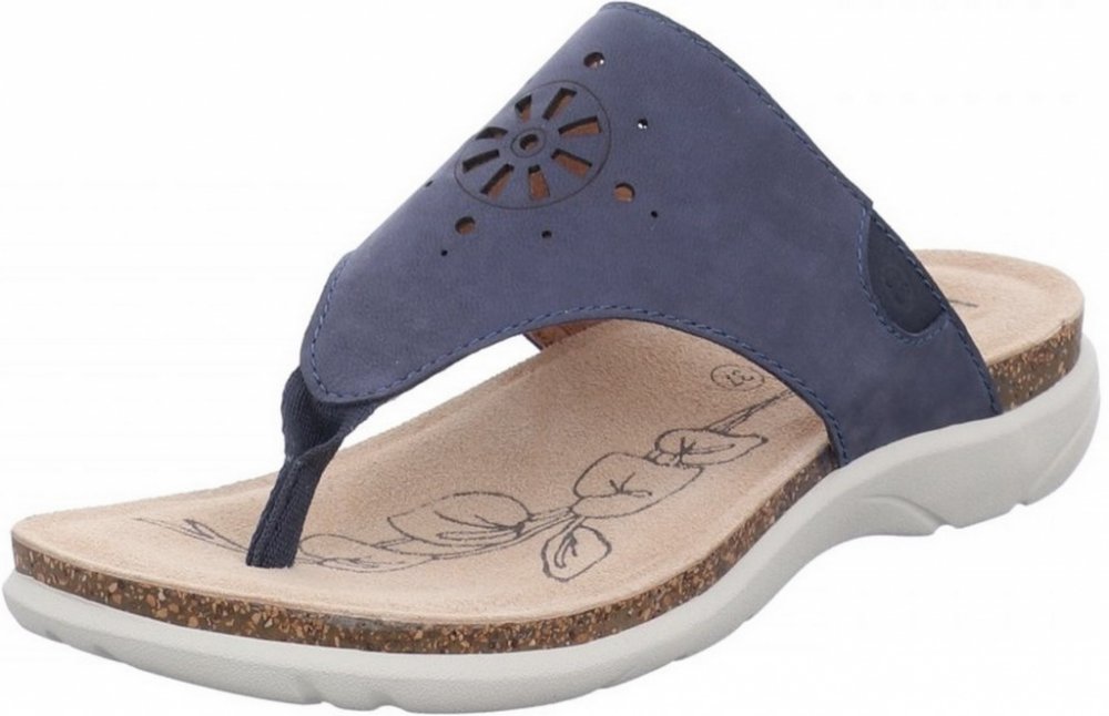 Dámské žabky Josef Seibel na pohodlné platformě s ozdobným perforovaným detailem na pásku, který dodává botám ten správný šmrnc. Podešev: Podešev obuvi je s jemným protiskluzovým vzorkem vyrobená ze syntetického materiálu. Na platformě vysoké 2 cm. Svršek: Svršek obuvi je vyrobený z koženého materiálu. Barva svršku je modrá. Podšívka: Podšívka je vyrobená z koženého materiálu. Stélka: Stélka je vyrobená z kůže s vyměkčením pro změkčení došlapu. Šířka: G Svršek: kůže Podšívka: kůže Stélka: kůže Podešev: Syntetika