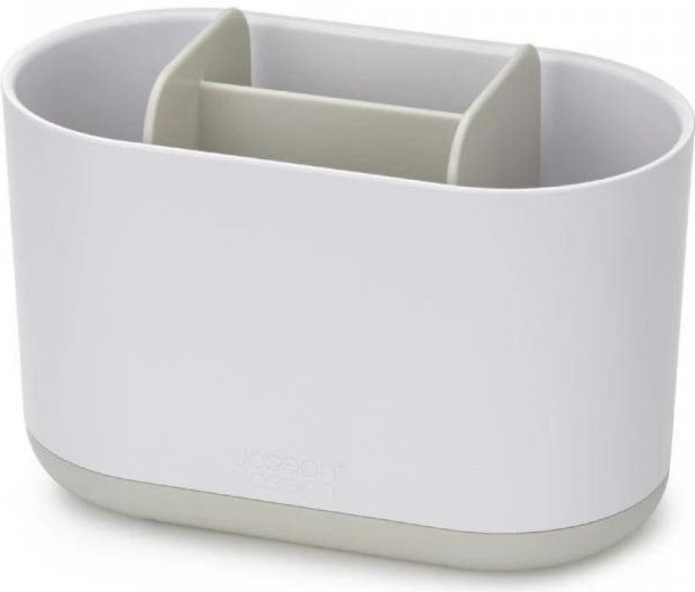 Stojánek JOSEPH JOSEPH Duo 70569 rozdělený do 4 sekcí poskytujících prostor pro běžné kartáčky, elektrické kartáčky, pastu a zubní nit. Snadno rozebratelný a čistitelný, s odvětrávacími otvory pro rychlé vysychání a protiskluznou základnou. Velikost: 12,1 x 17,8 x 9,5 cm (VxŠxH).