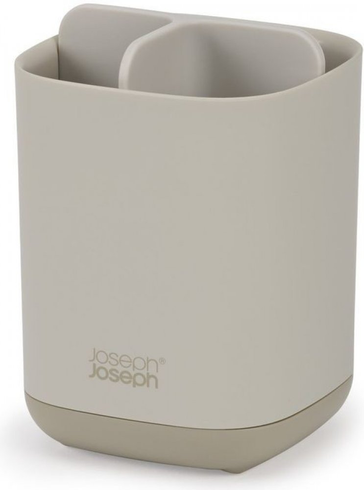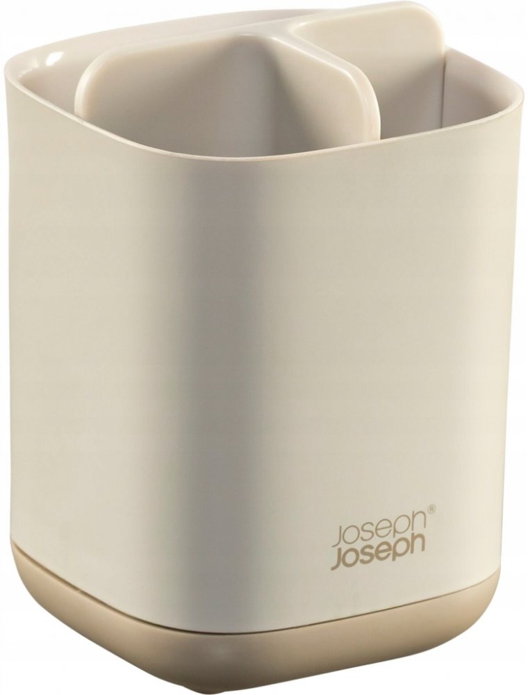 Stojánek JOSEPH JOSEPH EasyStore 70574 rozdělený do 3 sekcí poskytujících prostor pro běžné kartáčky, elektrické kartáčky a pastu. Snadno rozebratelný a čistitelný, s odvětrávacími otvory pro rychlé vysychání a protiskluznou základnou. Barevné provedení Ecru (barva surového hedvábí resp. neběleného plátna).