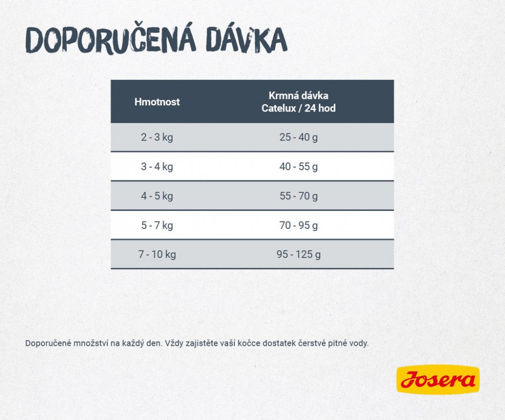 JOSERA Catelux s chutným kachním masem a s brambory obsahuje dietní vlákninu. Je tedy ideálním krmivem pro vybíravé kočky se sklonem k tvorbě chlupových bezoárů.