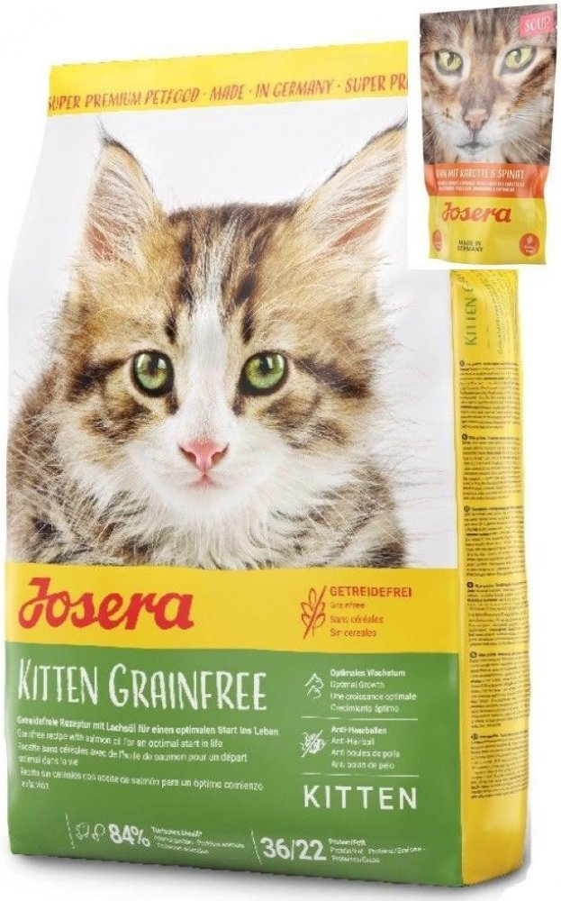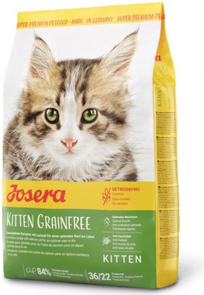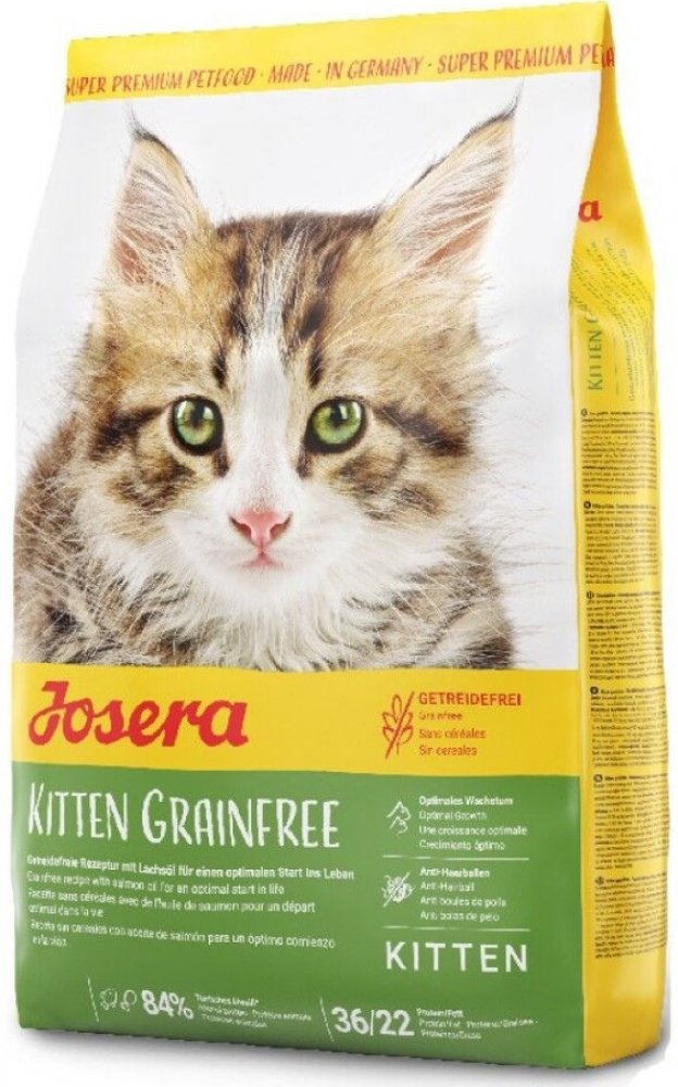 - Josera Kitten GrainFree je krmivo bez obilovin se snadno stravitelnou recepturou s vysokým obsahem drůbeže a vysokou úrovní energie, která je v klíčové fázi vývoje nezbytná.
