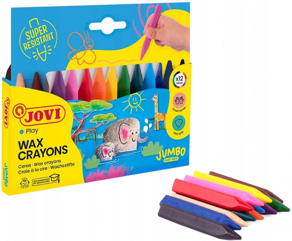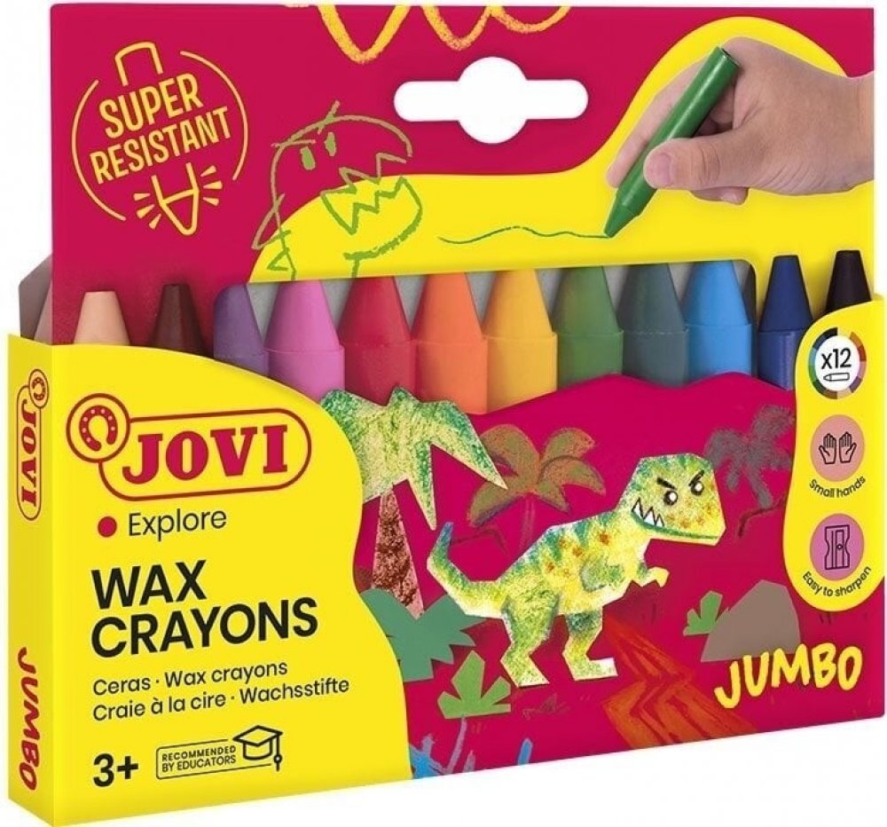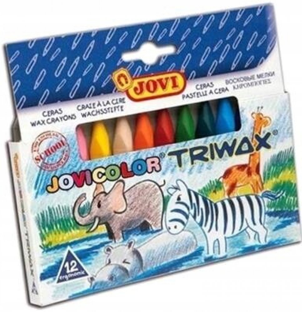 Publikace: JOVI voskovky trojhranné 12 ks - neuveden. Voskovka kulatá nebo trojúhelníková nešpiní, neláme se, má živé a jasné barvy. Její ergonomický tvar umožňuje, aby se dokonale přizpůsobila dětské ruce. Voskovky se mohou používat na všechny druhy matných papírů, na tenkou lepenku a kartón, stejně jako na dřevo nebo nerovné povrchy. Publikace: JOVI voskovky trojhranné 12 ks - neuveden.