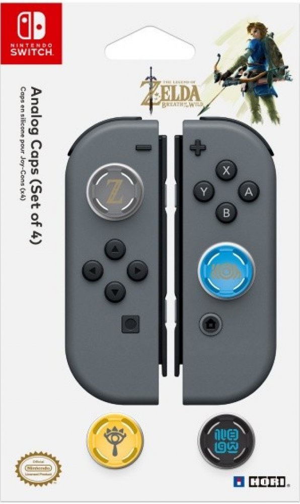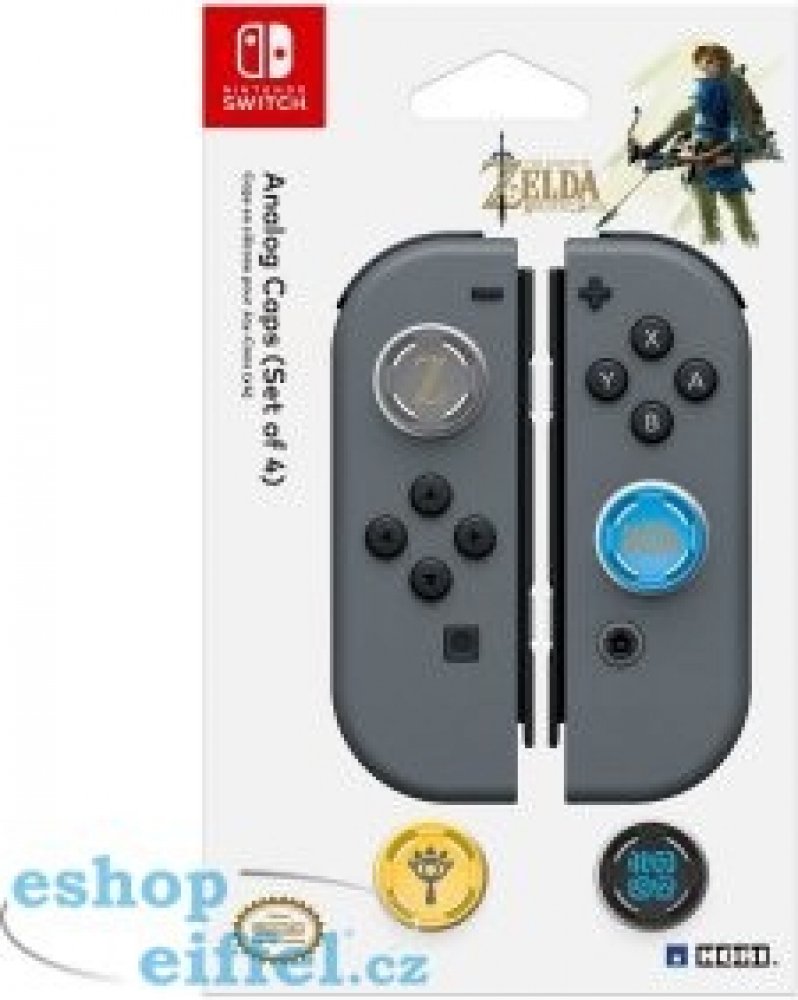 Balení čtyř barevných krycích čepiček na analogové páčky ovladačů Joy-Con s motivy ze hry The Legend of Zelda: Breath of the Wild. Přizpůsobte si ovladače Joy-Con vašemu vkusu a zároveň si zpříjemněte ovládání vaší konzole Nintendo Switch