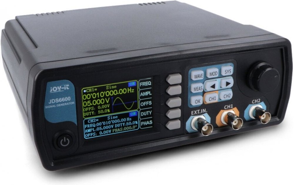 JT 6600 je 2kanálový generátor signálu, který vytváří signály o frekvenci až 60 MHz. Se svými různými tvary průběhů křivek, jako např. sinus, obdélník, trojúhelník, puls, půlvlna, atd., se hodí do vše