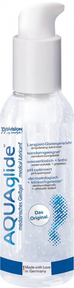 AQUA glide original 75 ml Zasuňte a užijte si to! Lékařské mazivo s optimální dlouhotrvající mazací vlastnosti. KřišĽálově čisté. Voda-rozpustný a non mastné. Bezpečný pro použití s latexovými kondomy. Dermatologicky a klinicky testován. pH-optimalizované pro udržování intimní oblasti vyvážené. Vyrobeno v Německu. 75 ml tube. Slide and enjoy! Medical lubricant with optimum long-lasting lubricating properties. Crystal clear. Water-soluble and non-greasy. Safe to use with latex condoms. Dermatologically and clinically tested. pH-optimised for keeping the intimate area balanced. Made in Germany. 75 ml tube.
