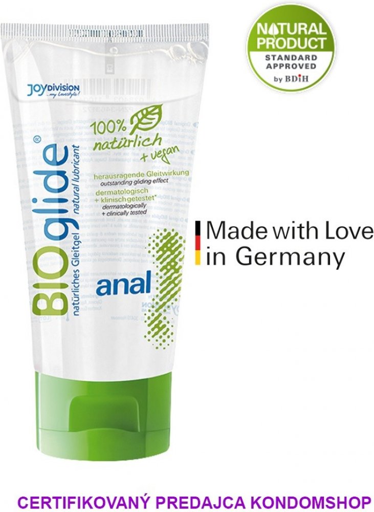 Lubrikační gel Bioglide ANAL je 100% natural lubrikační gel. Všechny použité ingredience jsou vyrobené na čistém bio základu, bez konzervačních a ochranných příměsí. pH je vyvážené, nejvyšší kvalita dává nejšetrnější vliv na pokožku a sliznice. Vodní základ, speciální složení pro extra lubrikaci při análním dráždění. 100% kompatibilní s kondomem.