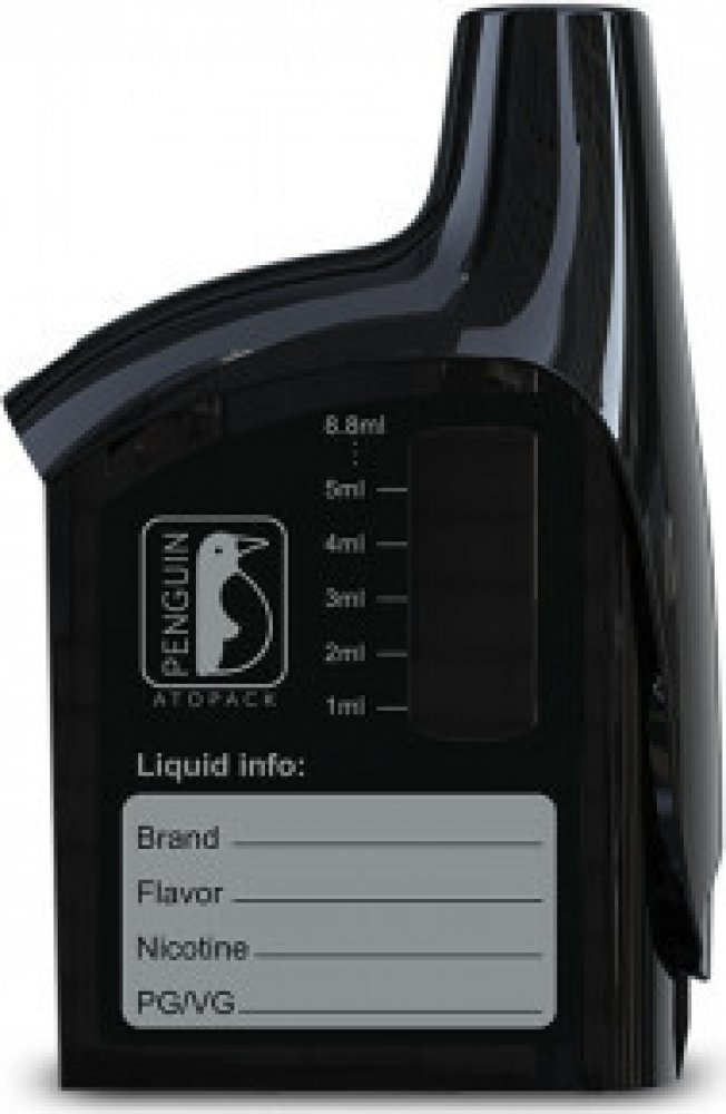 Náhradní cartridge Atopack pro elektronickou cigaretu Joyetech Atopack Penguin. Objem cartridge je 8,8ml. Na boční straně cartridge se nachází štítek, na který si lze zaznamenat název e-liquidu, příchuť, koncentraci nikotinu a poměr PG/VG. Budete tak mít neustále přehled o tom, co zrovna máte ve vaší cartridge za e-liquid.