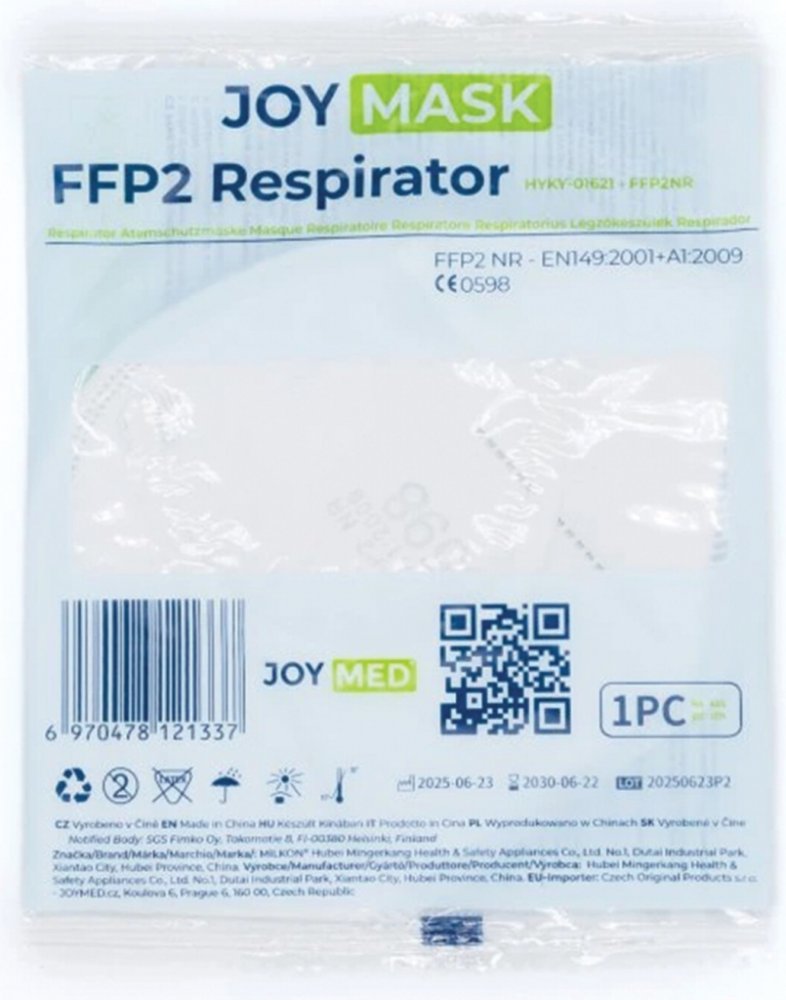 Prémiový FFP2 respirátor JOYMASK vznikl na základě dlouhodobého vývoje a zpětné vazby od lékařů, nemocnic a lékáren. Spojuje vysokou úroveň ochrany s komfortem při každodenním nošení a splňuje požadavky i pro profesionální použití. Klíčové vlastnosti respirátoru JoyMask FFP2, 5 ksCertifikace EN 149:2001 + A1:2009, FFP2 NR, CEFiltrační účinnost ≥ 94 %4vrstvá konstrukce s elektrostatickou filtrační vrstvouBez výdechového ventilu – vhodné i pro zdravotnictví a MHDTvarovatelný nosní klip pro přesné přilnutíMěkké elastické pásky za uši pro pohodlné nošeníHygienické balení po 1 ks s plnou dokumentacíJoyMask FFP2 respirátor bílý 5 ksRespirátor je certifikován dle EN 149:2001 + A1:2009 (FFP2 NR) a schválen notifikovanou osobou. Díky čtyřvrstvé konstrukci s elektrostatickou filtrační vrstvou dosahuje účinnosti ≥ 94 % a chrání uživatele i okolí, jelikož je bez výdechového ventilu. Tvarovatelný nosní klip a měkké elastické pásky zajišťují přesné přilnutí a pohodlí i při delším používání. Každý...