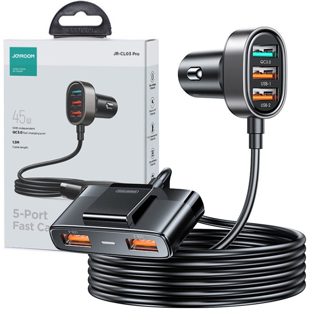 Nabíječka do auta, která poskytuje rychlé napájení vašich elektronických zařízení, je příslušenství, které se vyplatí vzít s sebou na každou cestu. Tento výrobek vám umožní nabíjet až 5 zařízení najednou a je také vybaven 1,5m prodlužovacím kabelem, aby k němu mohl každý cestující pohodlně připojit své zařízení. Nabíječka poskytuje vysoký výstupní proud, takže proces napájení je efektivní a rychlý. Praktický klip umožňuje zařízení připevnit například za sedadlo.