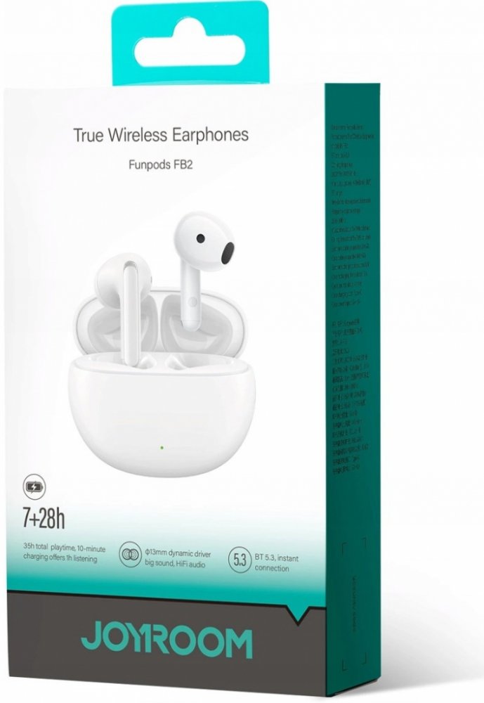 Vytvořte si svůj vlastní hudební svět se sluchátky Joyroom. Sluchátka Funpods JR-FB2 poskytují výjimečnou kvalitu zvuku a stabilní připojení Bluetooth 5.3. Nabízejí také až 35 hodin přehrávání a díky lehké konstrukci zajišťují dlouhotrvající pohodlí při používání. Nízká latence zajišťuje dokonalou synchronizaci zvuku a obrazu. Další výhodou je stupeň krytí IP54.