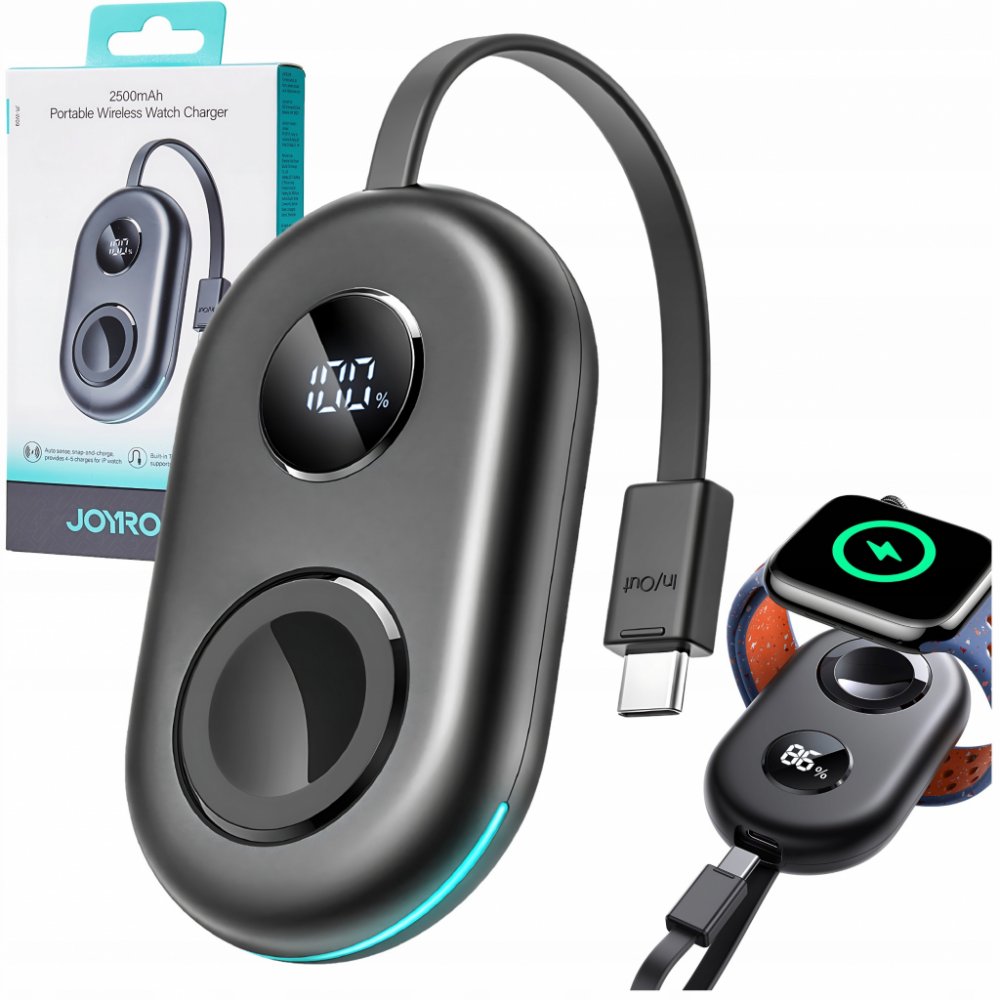 Nabíječka Joyroom JR-W09 je elegantní zařízení, které umožňuje nejen drátové, ale i bezdrátové nabíjení Apple Watch. S kapacitou baterie 2500 mAh nabízí možnost nabít hodinky až 3–4krát a je vybavena USB-C kabelem, což zajišťuje snadnou přenosnost.