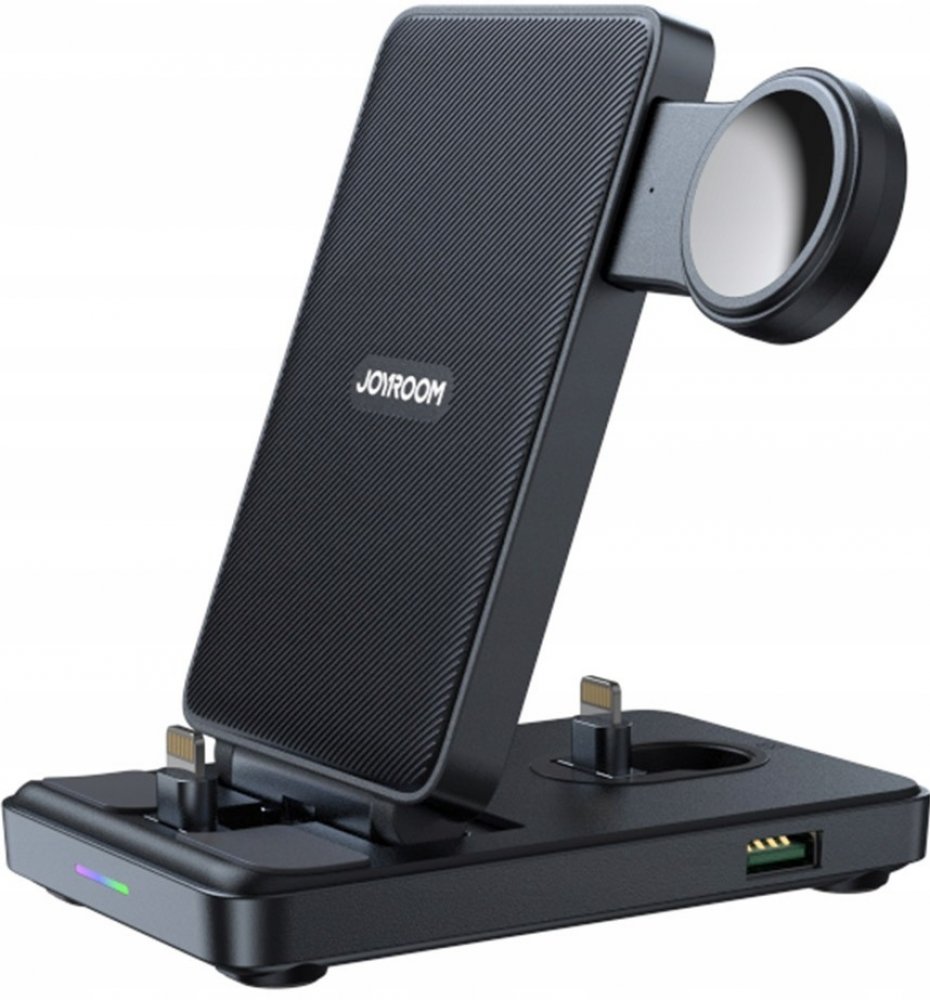 Nabíjejte až 4 zařízení současně a usnadněte si pořádek na pracovním stole nebo nočním stolku. Nabíjecí stanice Joyroom JR-WQW02 umožňuje nabíjet smartphone, bezdrátová sluchátka a hodinky Apple Watch a díky dalšímu portu USB-A můžete připojit například stolní ventilátor nebo malou lampu. Výrobek má také skládací konstrukci, která výrazně usnadňuje jeho přepravu.