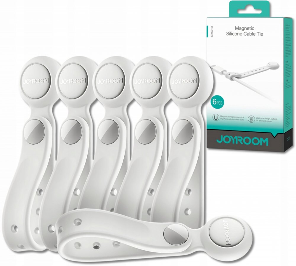 Řemínek na kabely Joyroom JR-ZS422 silikonový, s magnetem, sada 6 kusů – bílý