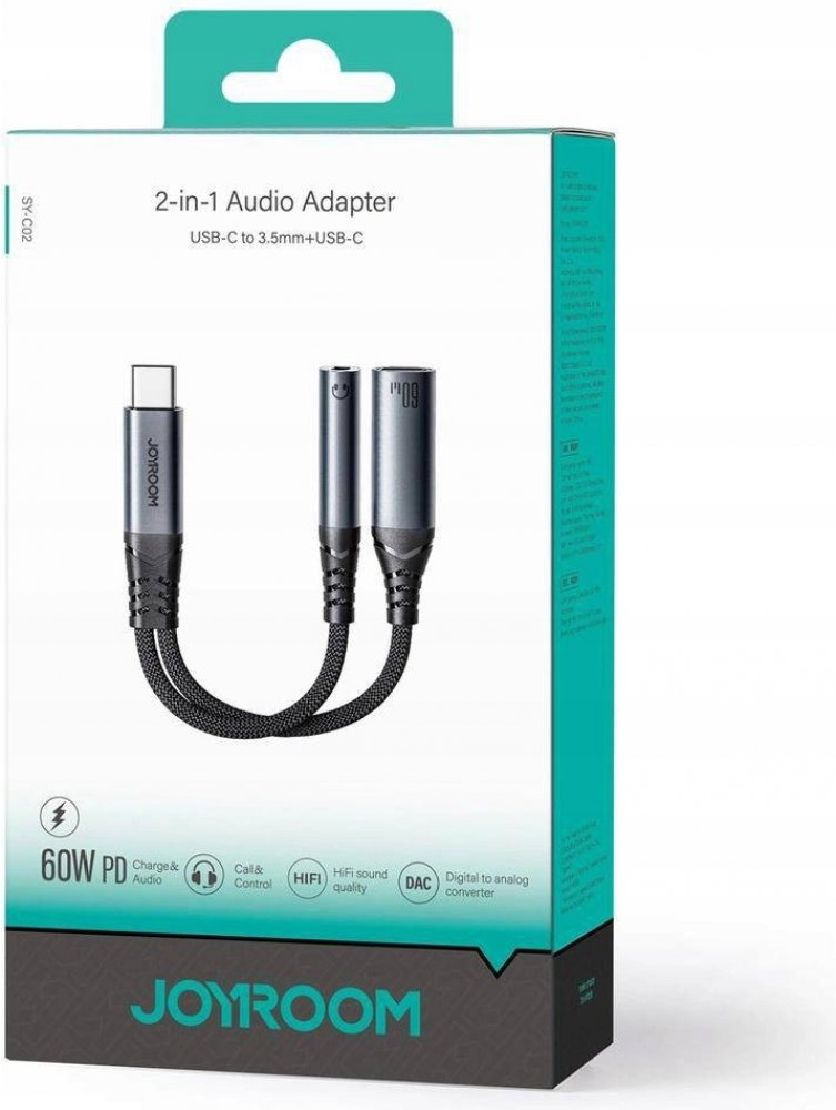 Joyroom rozbočovač SY-C02, umožňuje současně přehrávat hudbu a nabíjet smartphony. Se svými malými rozměry a všestrannými funkcemi je Joyroom SY-C032 nejen praktickým řešením, ale řeší i problém s počtem USB-C výstupů v zařízení. Adaptér má DAC digitálně-analogový převodník.